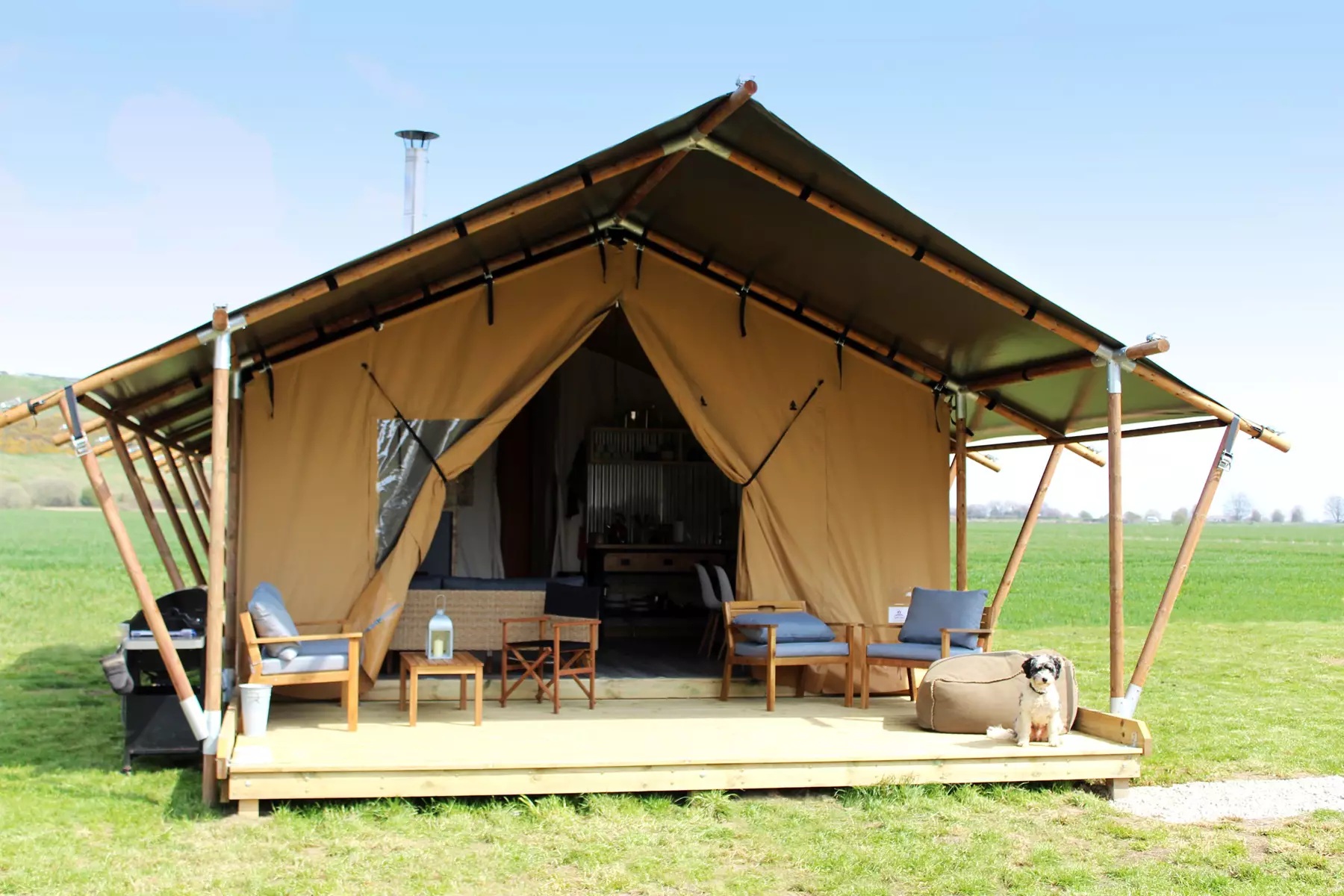 Wheatfields Luxury Glamping offer unique, luxury safari lodges set in a stunning location on the edge of Romney Marsh. With hot showers, wood burners and luxurious bedding these spacious tents are fully equipped and have everything you need for a relaxing and memorable holiday, and you can bring the dog too.Â